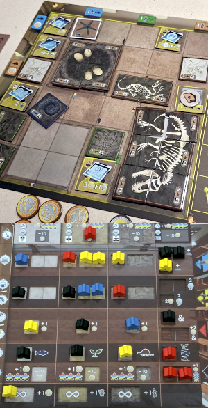 Beide Spiele haben gefallen. Das liegt sowohl an den Spielmechanismen, die gut ineinandergreifen als auch am Thema, dessen Umsetzung den Inhalt des Spiels gut veranschaulicht. Es entsteht das Bild eines Museums mit Fossilien und Infotafeln. Einige Fossilien stehen auf Podesten, um ihren höheren Wert für das Museum darzustellen.