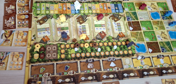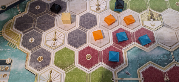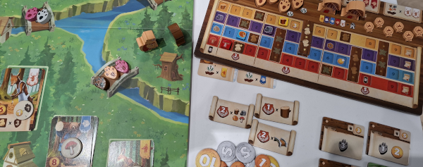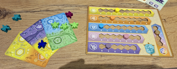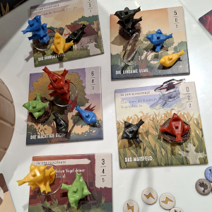 Im Spiel Zaunkönig (Asmodee/Inside Up Games) wetteifern wir um Reviere. Nicht immer ist die Mehrheit erforderlich, sondern oft ist auch der zweite oder dritte Platz erstrebenswert, denn diese können durchaus mehr Punkte bringen oder einmalige Sonderfunktionen mit sich bringen. Die Komplexität entsteht hier aus der Interaktion