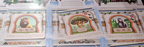 Mit Die hängenden Gärten (Piatnik) steigt der Verlag in den Bereich der Kennerspiele ein, wenn auch auf einem einfachen Niveau. Über diverse Plättchen, die jede ihre eigene Wertung aufweisen, bauen wir die hängenden Gärten auf.