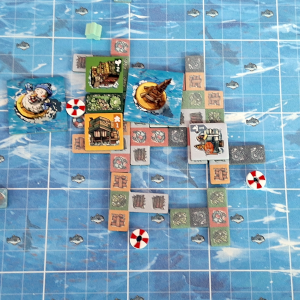 Manchmal täuscht die Optik wie bei Kingdom Crossing (Asmodee/sorry we are french). So niedlich das Spiel gezeichnet ist, so weit reicht es auch in der Komplexitätsskala. Wir müssen uns auf einem Spielplan Karten abholen, damit wir uns verbessern. Dazu müssen wir Brücken überqueren, dürfen jedoch jede Brücke nur einmal betreten. Kommen wir nicht weiter, hilft uns einmalig ein Ballon. Mit den vielfältigen Eigenschaften können wir uns dann dorthin entwickeln, was uns am meisten den Sieg verspricht.