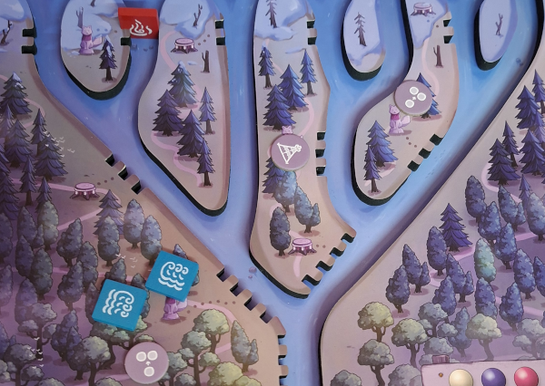 Das nächste Highlight wartete bei Pegasus auf uns. In 12 Rivers (Pegasus) werden 12 Kugeln in kleine Fächer gelegt. Sie werden die 12 Flüsse hinabrollen. Wir setzen Sperren, sodass die Kugeln hängenbleiben. An unseren Sperren dürfen wir eine der Kugeln, die dort hängenblieben, behalten. Mit diesen Kugeln triggern wir dann weitere Aktionen. Die Schräge mit den Flüssen war hübsch und funktionierte super. Wir warten gespannt auf dieses Spiel.
