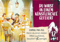 Leider ist der Ablauf nicht so gelungen. Bei uns stellten sich die Musen als sehr stark heraus. Sie geben zusätzliche Funktionen, dabei oft mehr Intuition, ohne dass ich dafür weniger Künstlerkarten auf die Hand bekomme. Deshalb sind bei uns die Musen sehr beliebt und werden gegenüber den Künstlerkarten klar bevorzugt. Auch die Leiden weisen deutliche Unterschiede in der Stärke auf. Wer als ersten die Syphilis bekommt, steckt andere an und hat lange keine Nachteile. Andere Karten hingegen führen dazu, dass in einer Spielrunde fast kein Fortschritt erreicht werden kann.