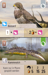 Unterschiede im Ablauf gib es zwischen Mischwald und Dartmoor keine. Die Art und Weise wie ich an Karten gelange und wie ich sie ausspiele, ist identisch. Der Unterschied liegt in den Kartenfunktionen. Hier sind besonders die Startkarten auffällig. Es gibt nun nicht mehr Bäume. Es kommen Sträucher und Moore hinzu. Sträucher ähnelt den Bäumen, haben aber andere Effekte. Hinzu kommen Karten, die Bäume und Sträucher in ihrer Funktion unterscheiden, meist in Bezug auf die Siegpunktvergabe. Moore sind allein deswegen anders, weil an ihnen nur oben und unten angelegt wird, jedoch nicht an den Seiten. Bei den Karten gibt es einige, die nur an Mooren ihre volle Wirkung entfalten.