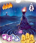 Als Folge bekommt er ab dem zweiten Zelt abwechselnd eine weitere Aufgabe oder er darf eine Karte werten. Die Aufgabe wählt er wie seine zu Beginn des Spiels. Bei einer Kartenwertung schiebt er eine seiner Handkarten unter sein Spielbrett, sodass die Hälfte sichtbar bleibt. Die Landschaft und, falls vorhanden, ein Symbol, ein Feuer oder ein Stern zählen für die Erfüllung der Aufgaben bzw. für die Endwertung mit.