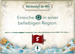 Eines der beiden Schiffe kann den Fluss abwärts fahren. Die Strecke wird durch den Würfel bestimmt. Am Zielort befinden sich Gebäudeplätze. Sind sie unbebaut, gibt es einen Koku, die Währung in Rokugan. Steht dort ein Gebäude, gibt es diverse Belohnungen. Sie reichen von Ressourcen (Seide, Reis, Porzellan), über Gunst zu Siegpunkten. Der Besitzer des Gebäudes bekommt auch eine Belohnung, die anders aussieht als die, die es für das anlegende Schiff Um ein Gebäude zu errichten, muss ich eine Grundstücksgebühr bezahlen. Sie reicht von 5 bis 13 Koku und richtet sich überwiegend danach, ob sie an einem, zwei oder drei Flussabschnitten liegt. Das Ufer ist in sechs Regionen unterteilt. Der Würfel bestimmt die Region, in der ich das Gebäude errichten muss. Wenn ich ein Gebäude errichte, erhöht sich mein Einfluss in der Region, in der ich baue. Für den Einfluss erhalte ich hin und wieder auch eine Ressource, Koku oder Siegpunkte. Am Ende des Spiels gibt es in jeder Region eine Mehrheiten-Wertung, bei der der Einfluss entscheidend ist.