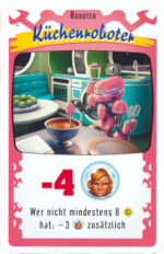 Mein erster Gedanke zu dem Spiel war: Skurril. Wer will denn ein Spiel spielen, bei dem alles, was er aufbaut und erreicht hat, durch das Spiel wieder zerstört wird? Ich kenne inzwischen die Antwort darauf: die meisten Spieler in unserem Spielkreis. Die Mondkolonie mit ihren verschrobenen Robotern und den so unbeliebten Ereignisse erfreut sich großer Beliebtheit.